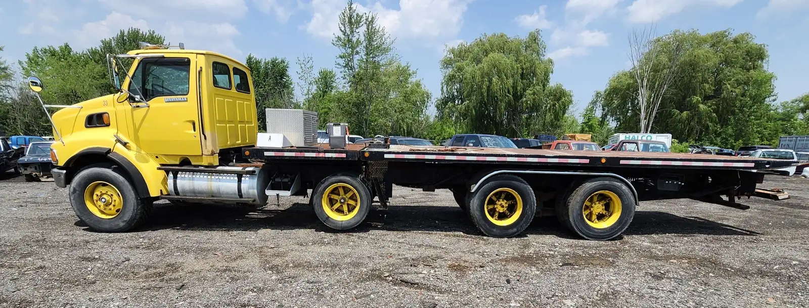 1998 Ford Louisville -Rollback towing deck with winch for pulling on equipment, as well as wheel lift. 27.5ft total bed length (22ft main bed). CAT diesel engine, Road Ranger 10spd manual transmission. Air ride seats. 825847kms, 27338hrs. Truck is in running condition. Asking $10,500 plus HST – selling in As-Is condition.