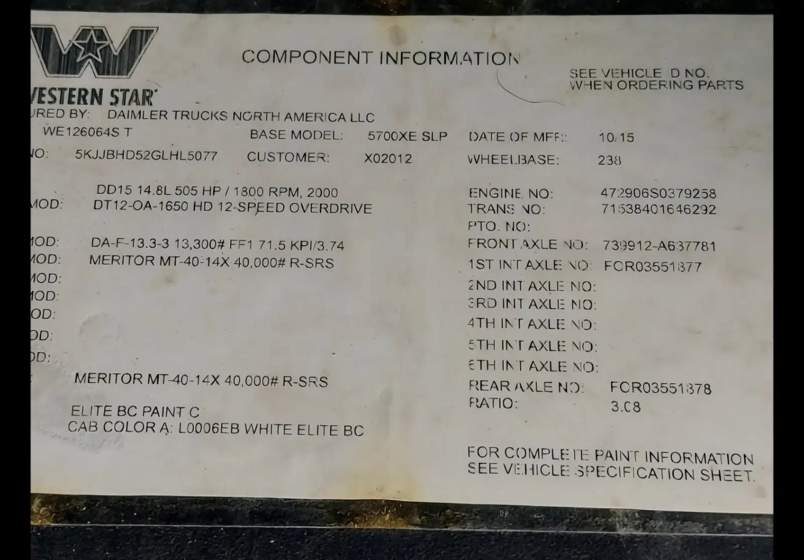 2016 Western Star 5700XE, Detroit DD15 505HP, DT12 Detroit automatic 12spd transmission. 1,296,620kms. Merritor 13,300 front axle and 40,000 rear axle. 238″ wheelbase. 82″ high sleeper with fridge and microwave. Like new tires, well maintained truck, frame in excellent condition. Has had recent pre-safety inspection and is ready for the road after e-test and final inspection.. Asking $21,950.00 plus HST – selling in Certified Condition